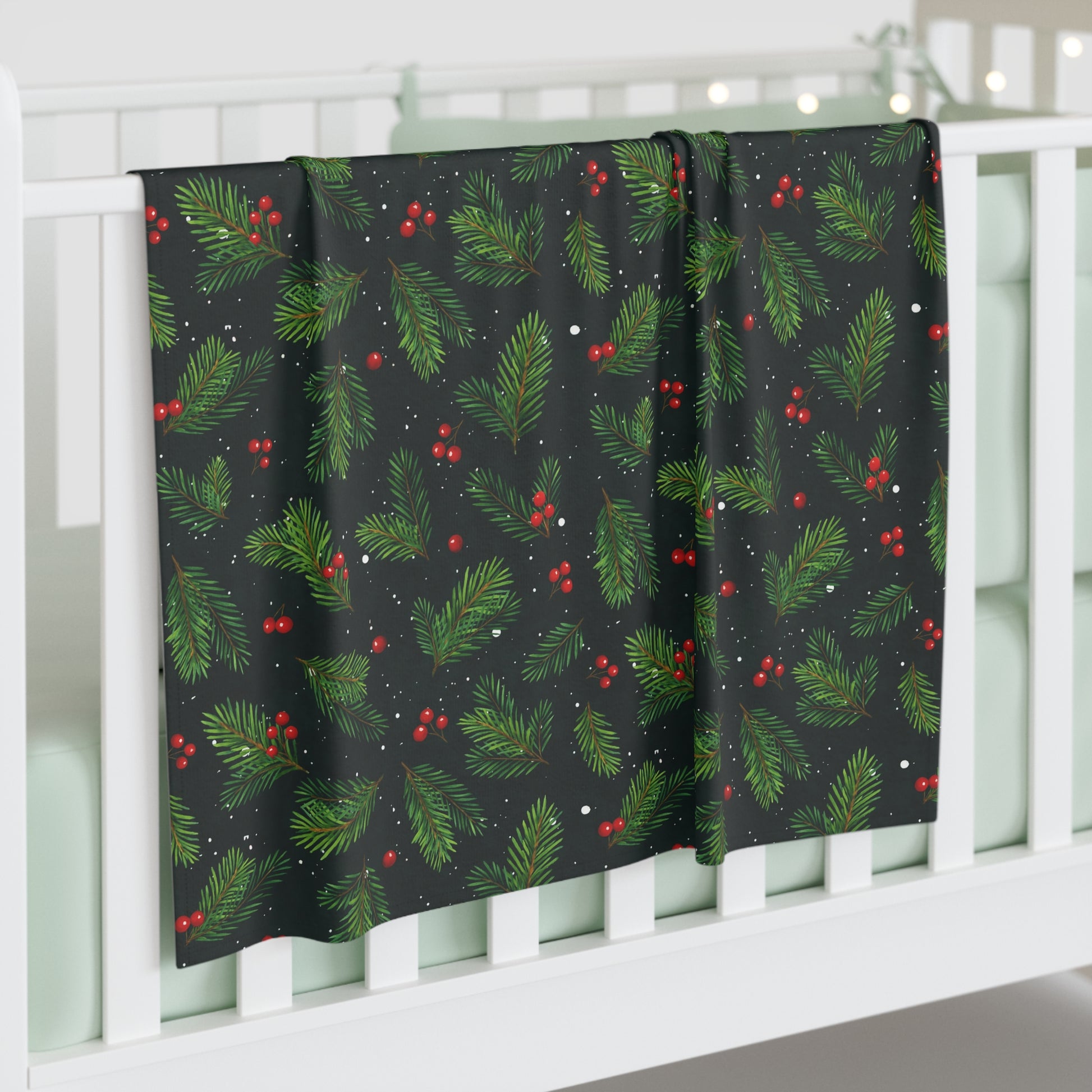 Christmas Holly & Pine Baby Swaddle Blanket