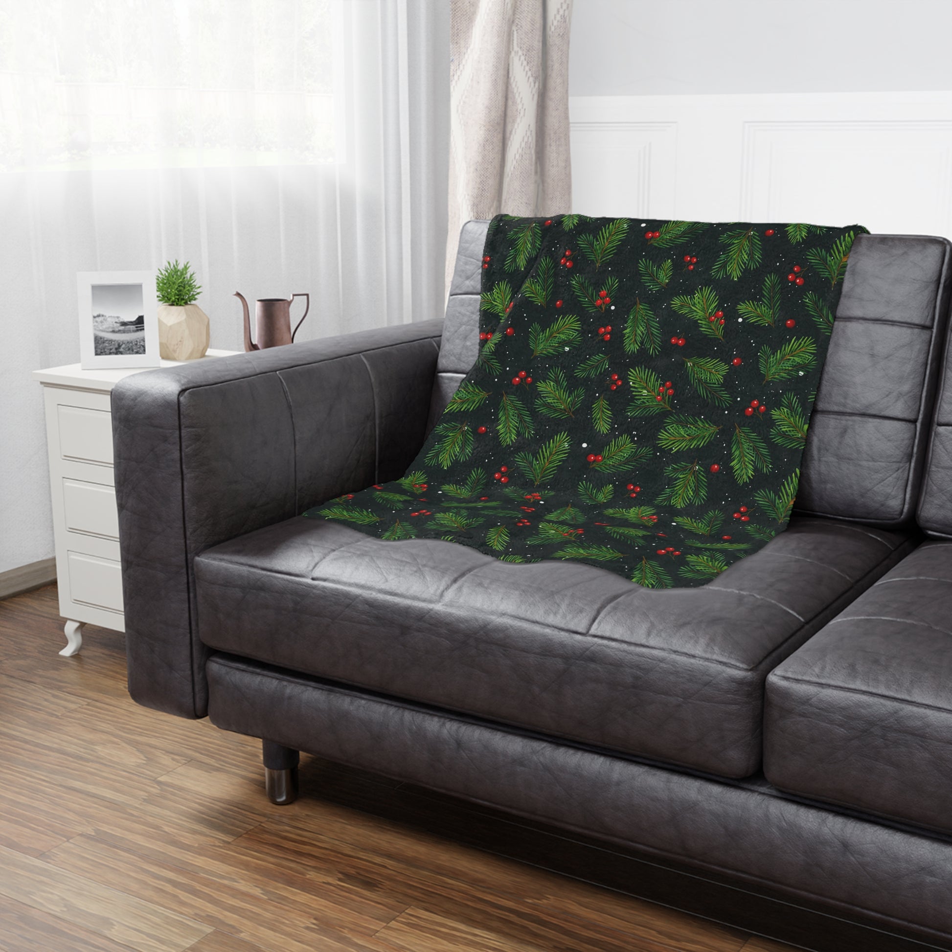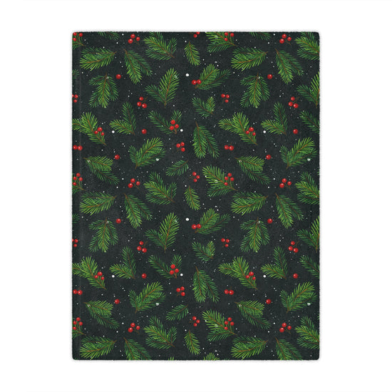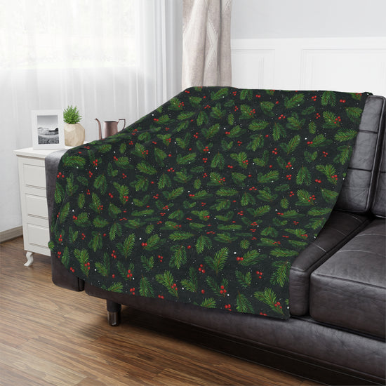 Christmas Holly & Pine Minky Fleece Blanket