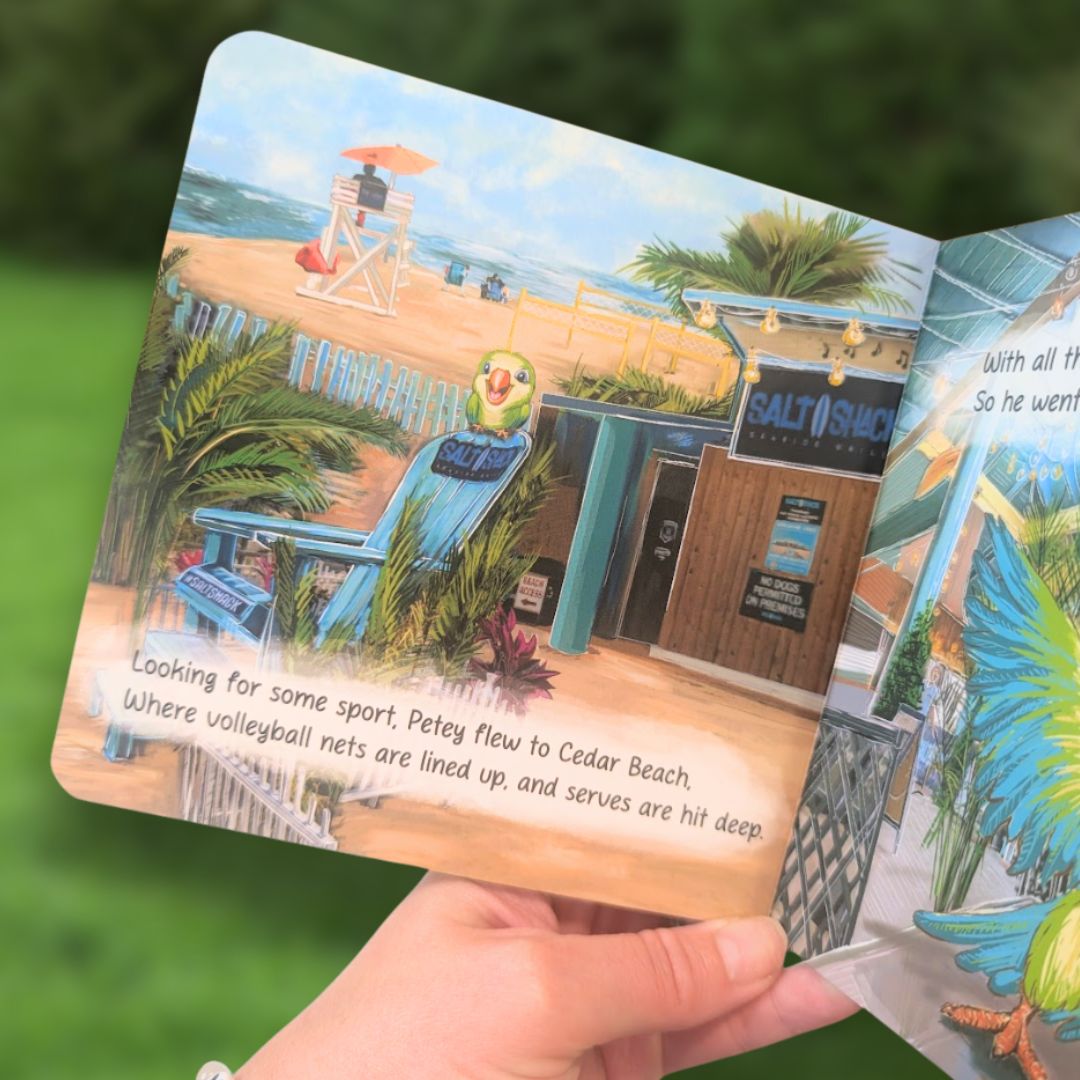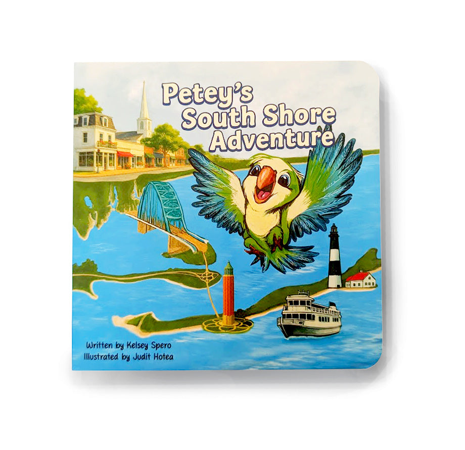 This locally designed children’s board book will delight both parents and little ones as Petey the Parakeet spends a fun-filled summer day exploring iconic Long Island spots. From breakfast at Glen’s Dinette to beach games at Cedar Beach, every page highlights a landmark that families know and love.