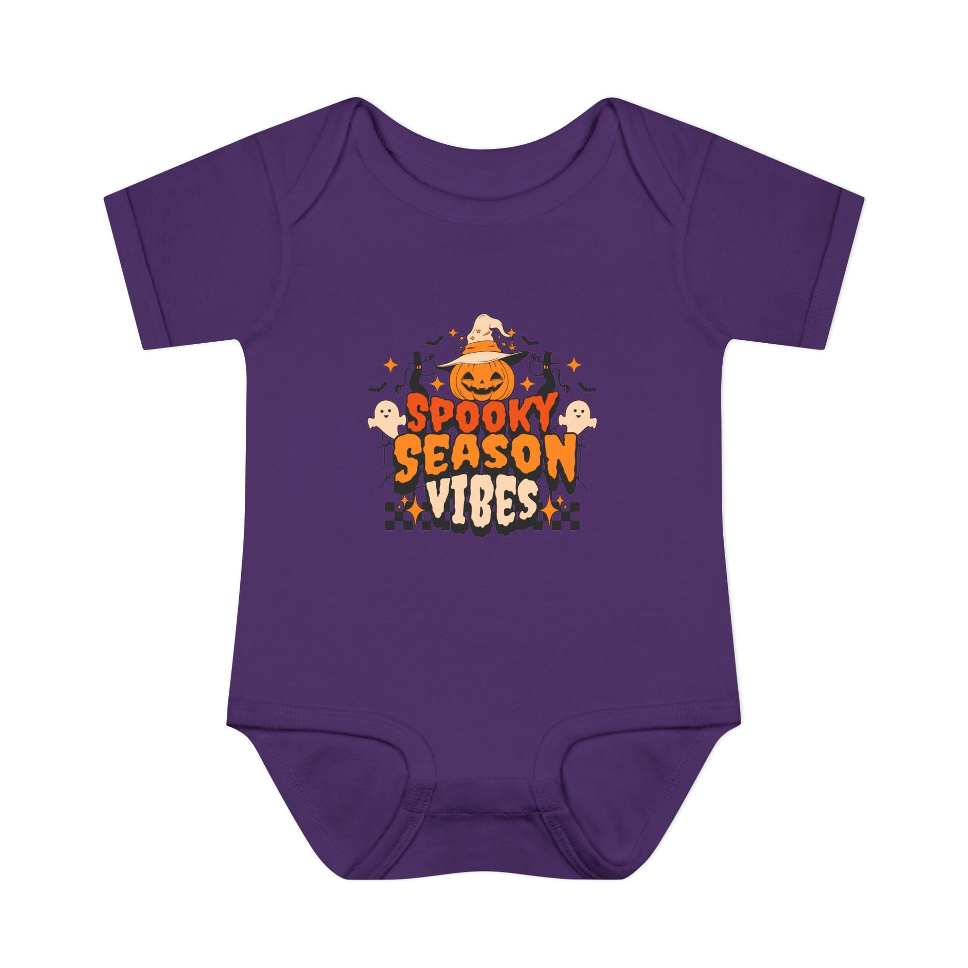 Get your little pumpkin ready for spooky season in the cutest way possible! This Spooky Season Vibes baby bodysuit brings all the festive fun with a playful Halloween design featuring ghosts, bats, and a pumpkin in a witch hat. Made from ultra-soft, 100% combed ringspun cotton, it’s gentle on baby’s skin and perfect for cozy autumn cuddles, pumpkin patch trips, and Halloween photos.